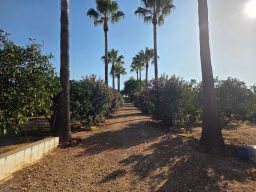 Esta encantadora finca cuenta con un impresionante camino de entrada bordeado de palmeras y adelfas. Cuenta con jardines maduros llenos de árboles frutales como naranjos, limoneros y granados que brindan sombra y un ambiente mediterráneo.
